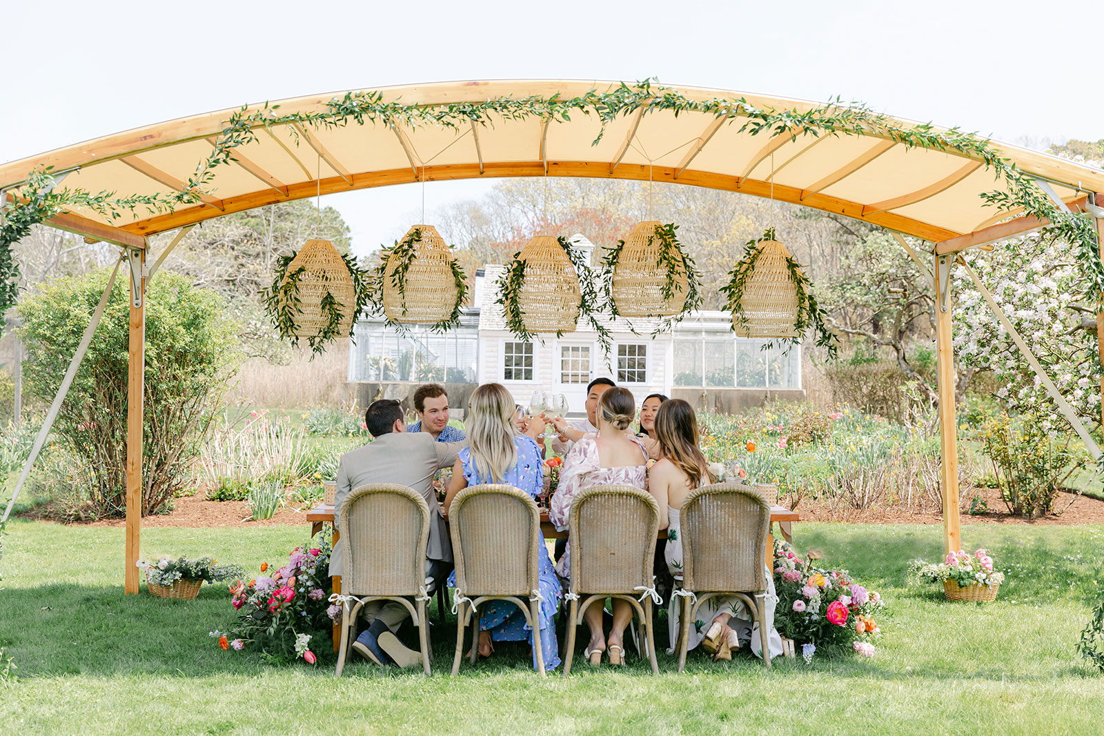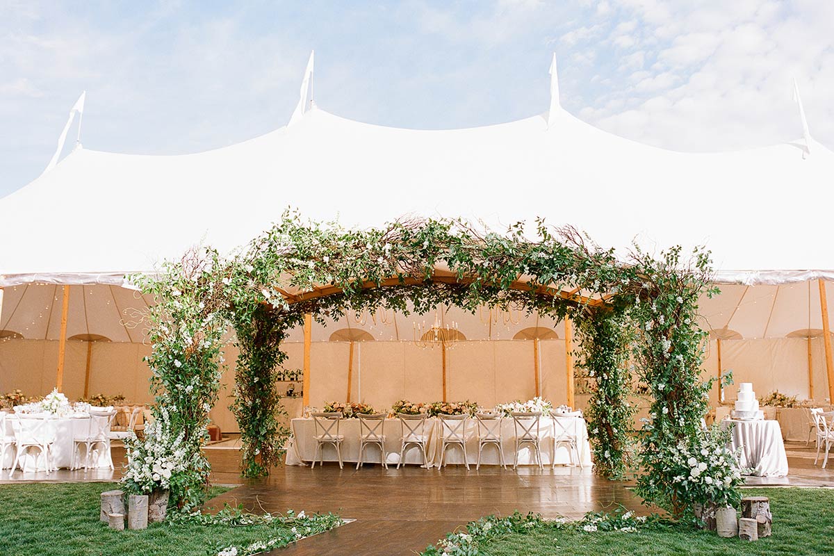 Its versatile design also allows it to be installed on patios, decks, and other hardscaped locations often found at coastal venues. Our team incorporates the Aurora Archway into the larger event design to create inviting transitions, focal points, and thoughtfully arranged gathering spaces.